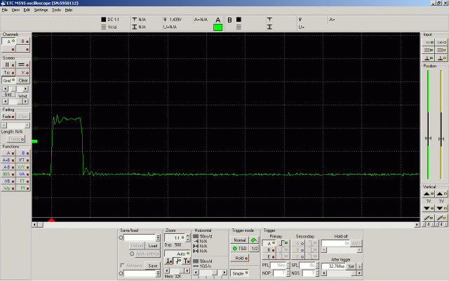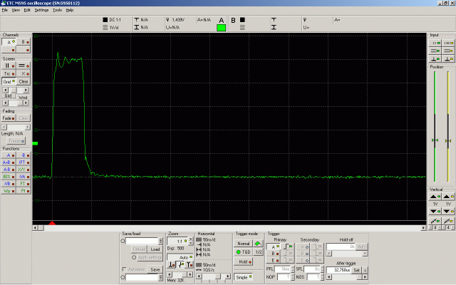 Probe jumpered for 50 Ohms, no cabling or other load attached